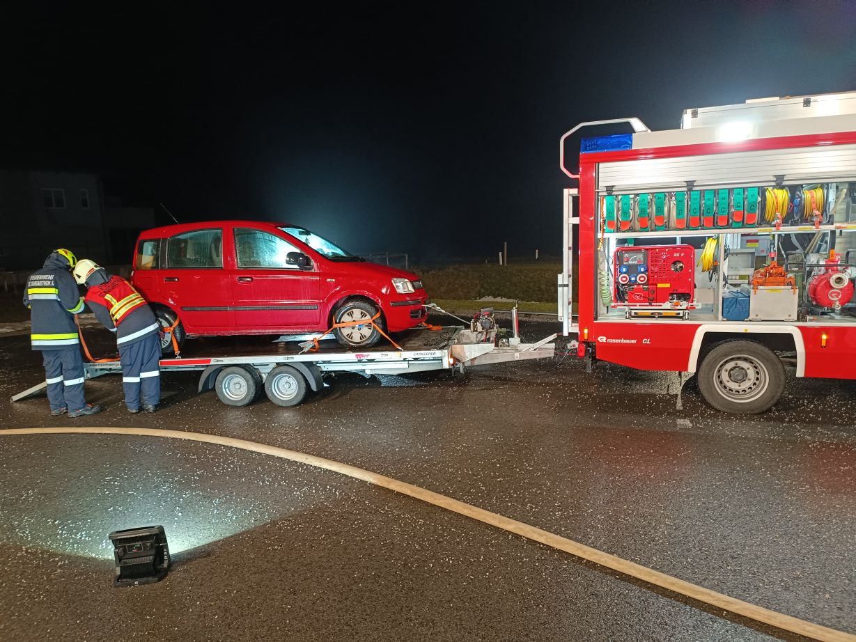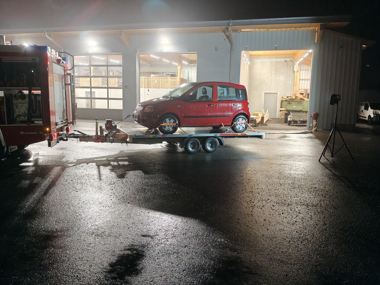• mit dem Abschleppanhänger und dem HLF einen PKW aufladen