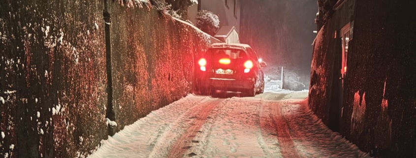 Auf dem Nachhauseweg vom vorherigen Einsatz entdeckte ein Kamerad am Kirchenberg ein Fahrzeug welches sehr knapp bei der Mauer zum stehen gekommen ist. Mittels Seilwinde konnten wir das Fahrzeug den Kirchenberg hochziehen. Die Fahrerin konnte ihre Fahrt fortsetzen.